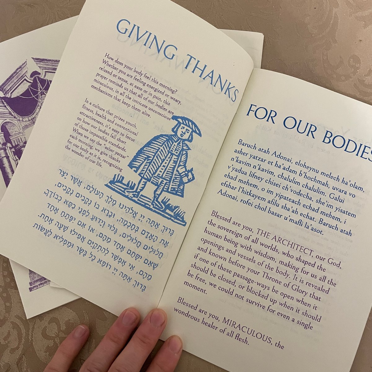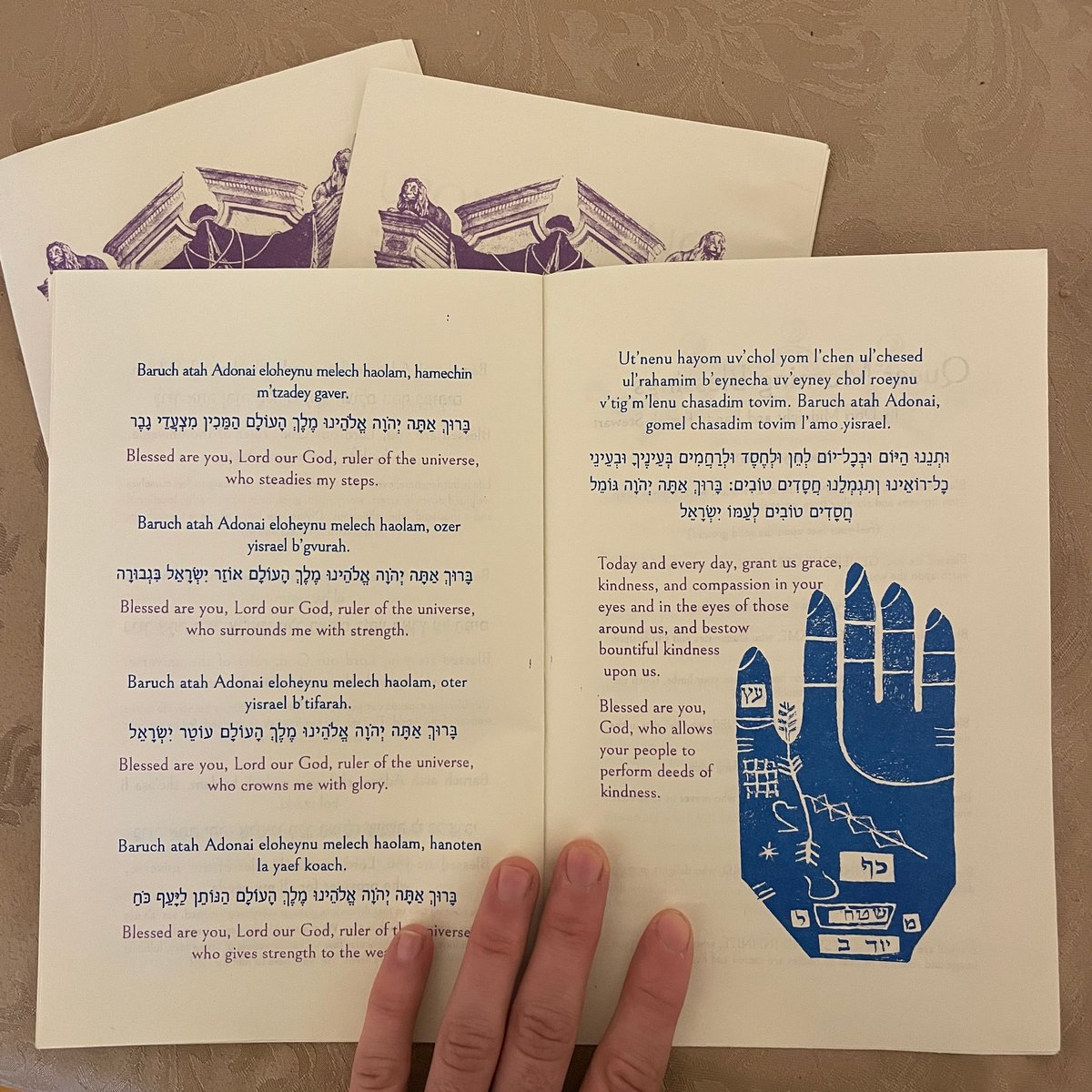 This risograph printed zine was originally created for a Jewish education program at Riker's Island. It supplements the text of the traditional Jewish morning blessings with reflections on what it means to be made in the image of God, how to relate to gratitude when things are difficult, and more. Each page is enlivened by illustrative elements drawn from Jewish amulets and manuscripts digitized by the Bezalel Narkiss Index of Jewish Art.